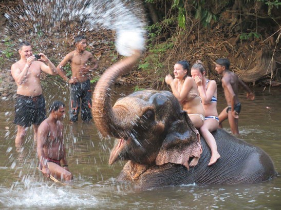 Ever dreamt of elephant giving you a wonderful bath? Sit on the cute elephants and they will bathe you by splashing water on you!! Its really really fun!